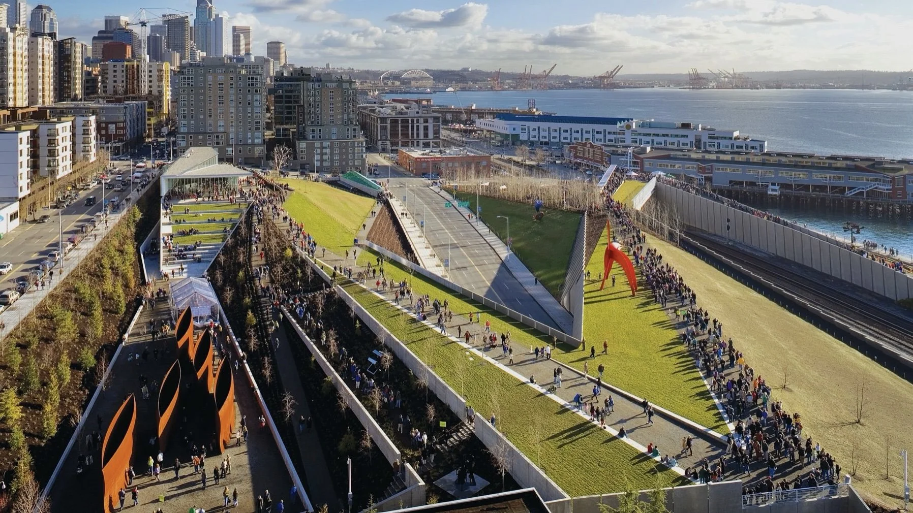 Weiss/Manfredi | Olympic Sculpture Park project spotlight documentary exploring a new model for an urban sculpture park on a former industrial waterfront site. Conceived as a continuous, constructed landscape for art, the uninterrupted Z-shaped green platform descends 40 feet from the city to the water, bridging existing infrastructure and reconnecting Seattle’s urban core to its revitalized waterfront. Produced for the Sundance Channel series Big Ideas for a Small Planet.