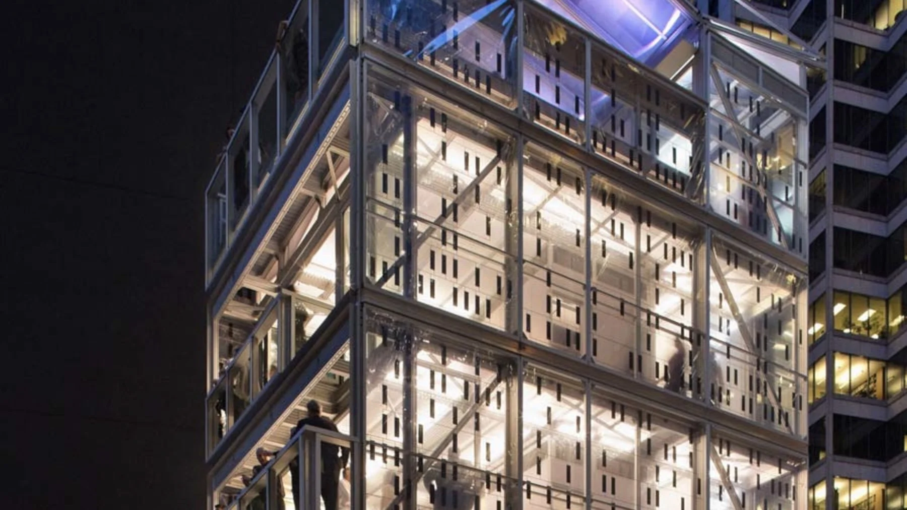 KieranTimberlake | Cellophane House project spotlight documentary chronicling the innovative, prefabricated five-story home designed by James Timberlake and Stephen Kieran for MoMA’s Home Delivery exhibition, highlighting rapid assembly and disassembly and sustainable, energy-gathering materials such as transparent SmartWrap. Produced for the Sundance Channel series Big Ideas for a Small Planet.
